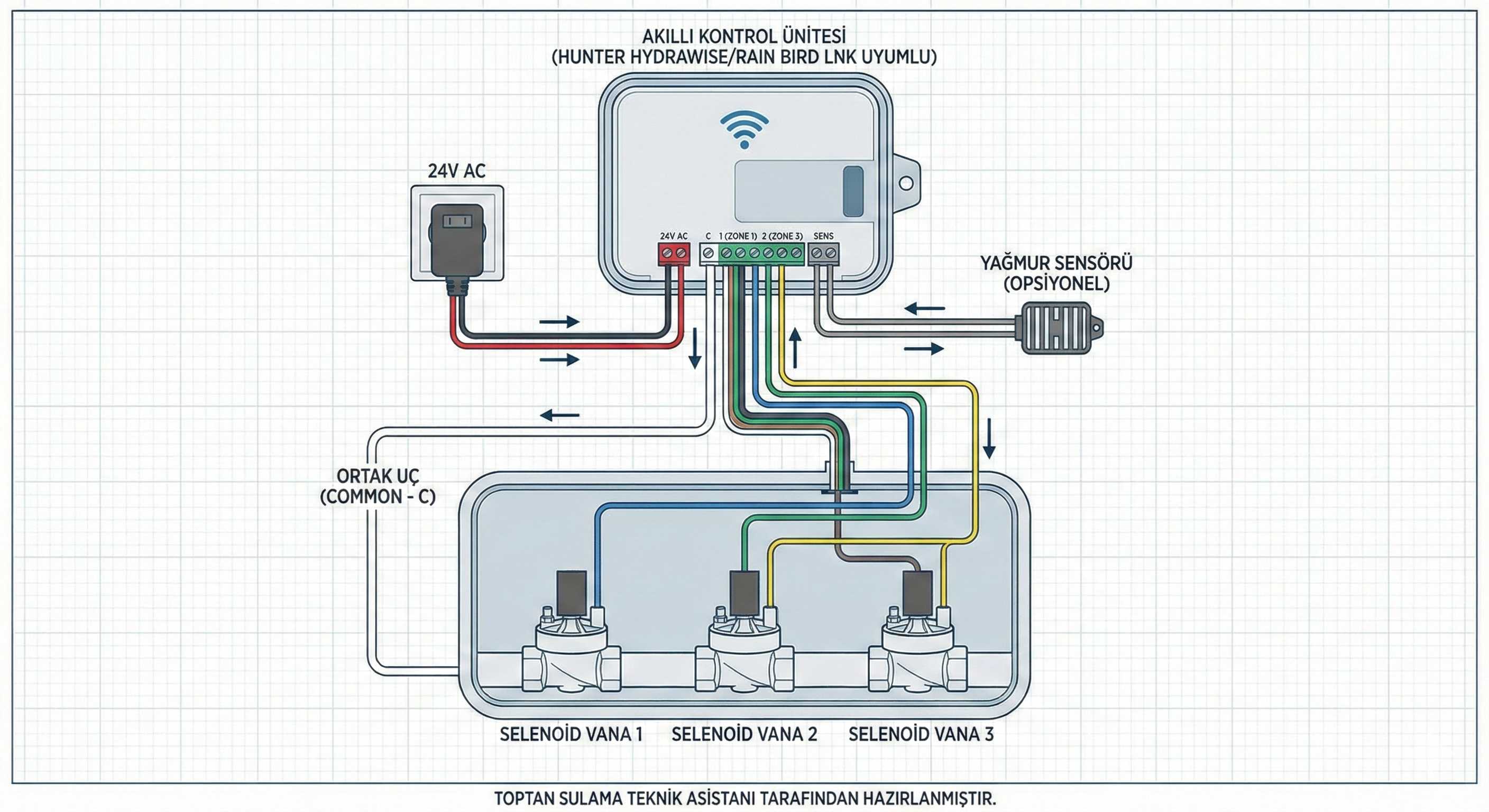 Sistemi kurmadan önce Wi-Fi sinyal gücünüzün vana kutusuna veya kontrol ünitesinin takılacağı noktaya ulaştığından emin olun. Eğer sinyal zayıfsa, bir Wi-Fi menzil genişletici kullanmanız sistemin sağlıklı çalışması için kritiktir.