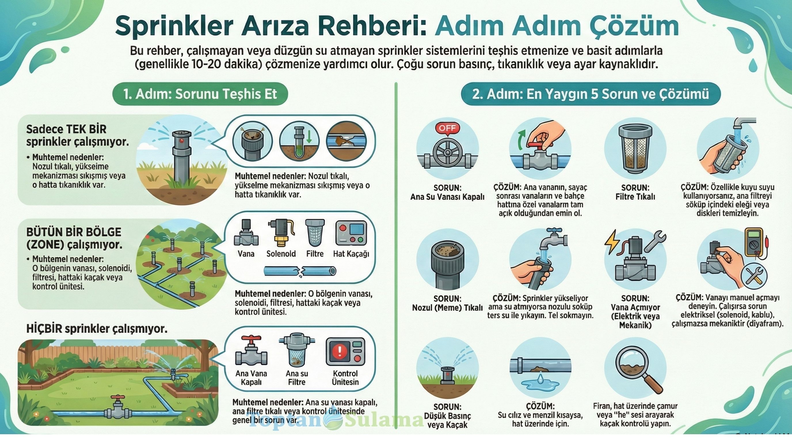 Sprinkler Çalışmıyor / Su Atmıyor: 10 Sebep, 10 Çözüm (Adım Adım Arıza Tespiti)